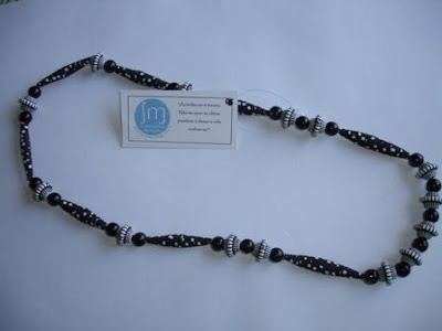 Colar em miçanga preta, medalhão em flor com aplicação de pérola de vidro