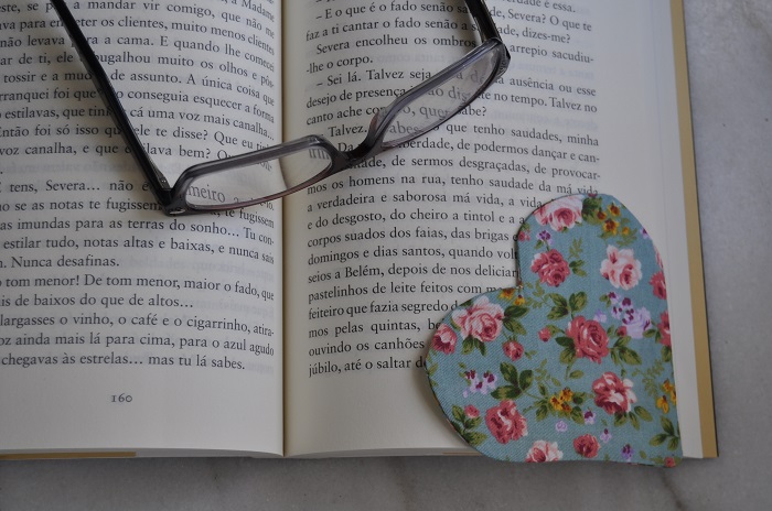 Estava a precisar de um marcador de livro e optei por fazer este, em tecido, que achei muito lindo. Ele é muito simples de fazer e você encontra todas as instruções aqui.